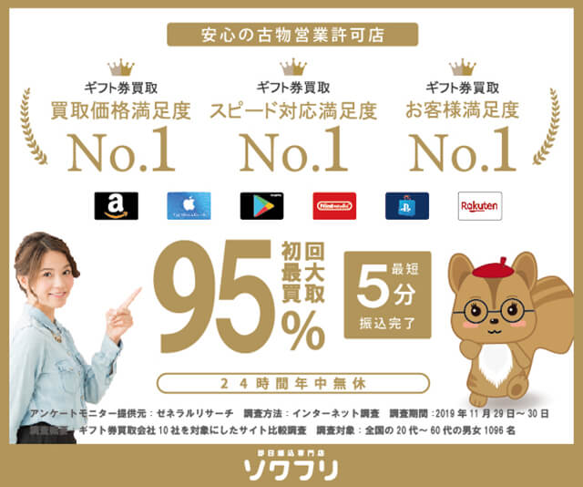 ソクフリはギフト券の買取サイトですが、Appleギフトカード(iTunesカード)の換金ができるのか、名前通り実際の振り込みが早いのか気になりませんか? 結論からお伝えすると、ソクフリでAppleギフトカードの換金は可能で、振り込み最短5分と非常に早いです。 本記事では、ソクフリでAppleギフトカードを買い取る際に気になる3点、買取レートをアップさせる2つのコツについて紹介いたします。 また、ソ […]